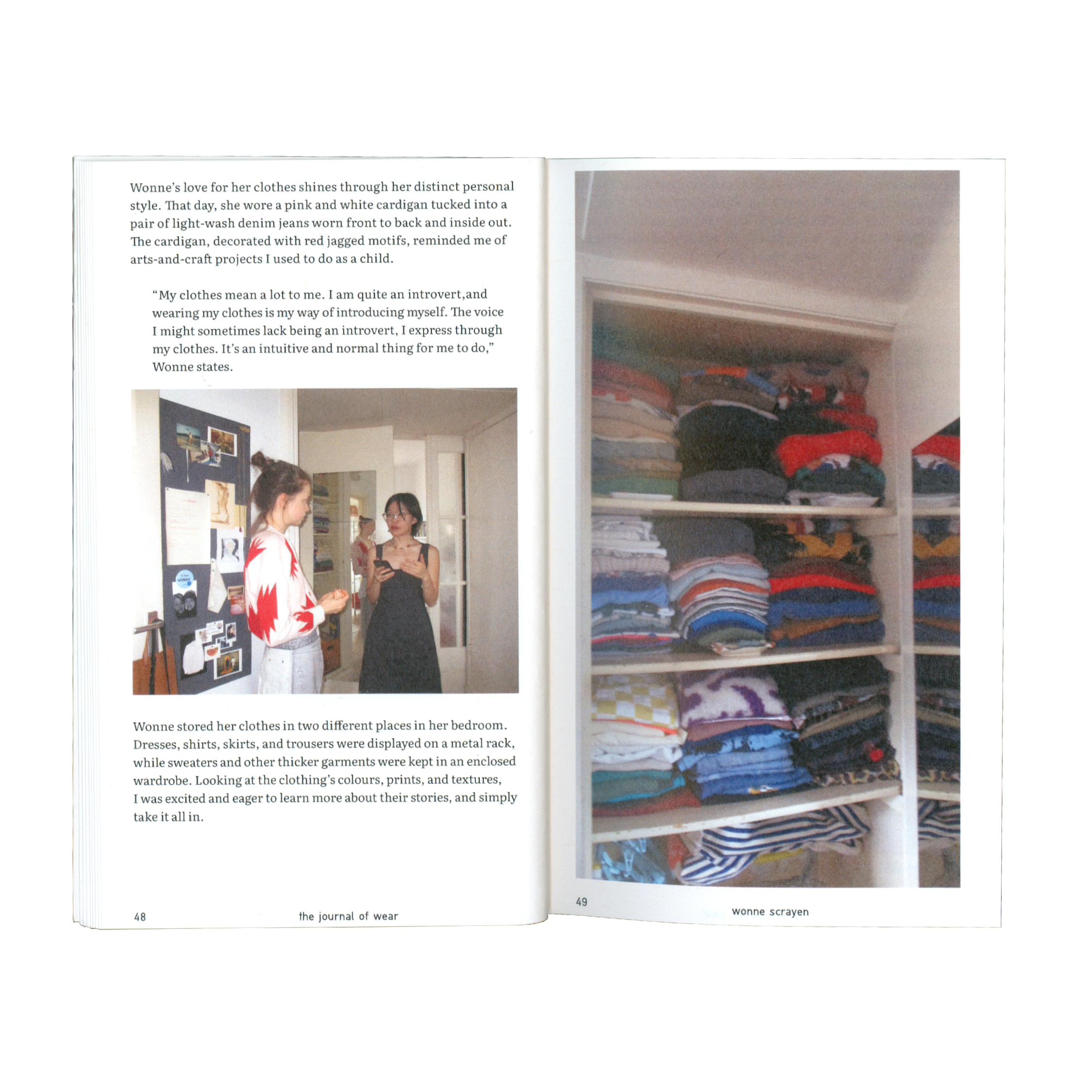 First conceived as a series of digital articles with friend and collaborator Esther Koh in 2022, The Journal of Wear features narrative-style interviews that capture the wearer’s unique voice and story from their perspective with the writer’s.